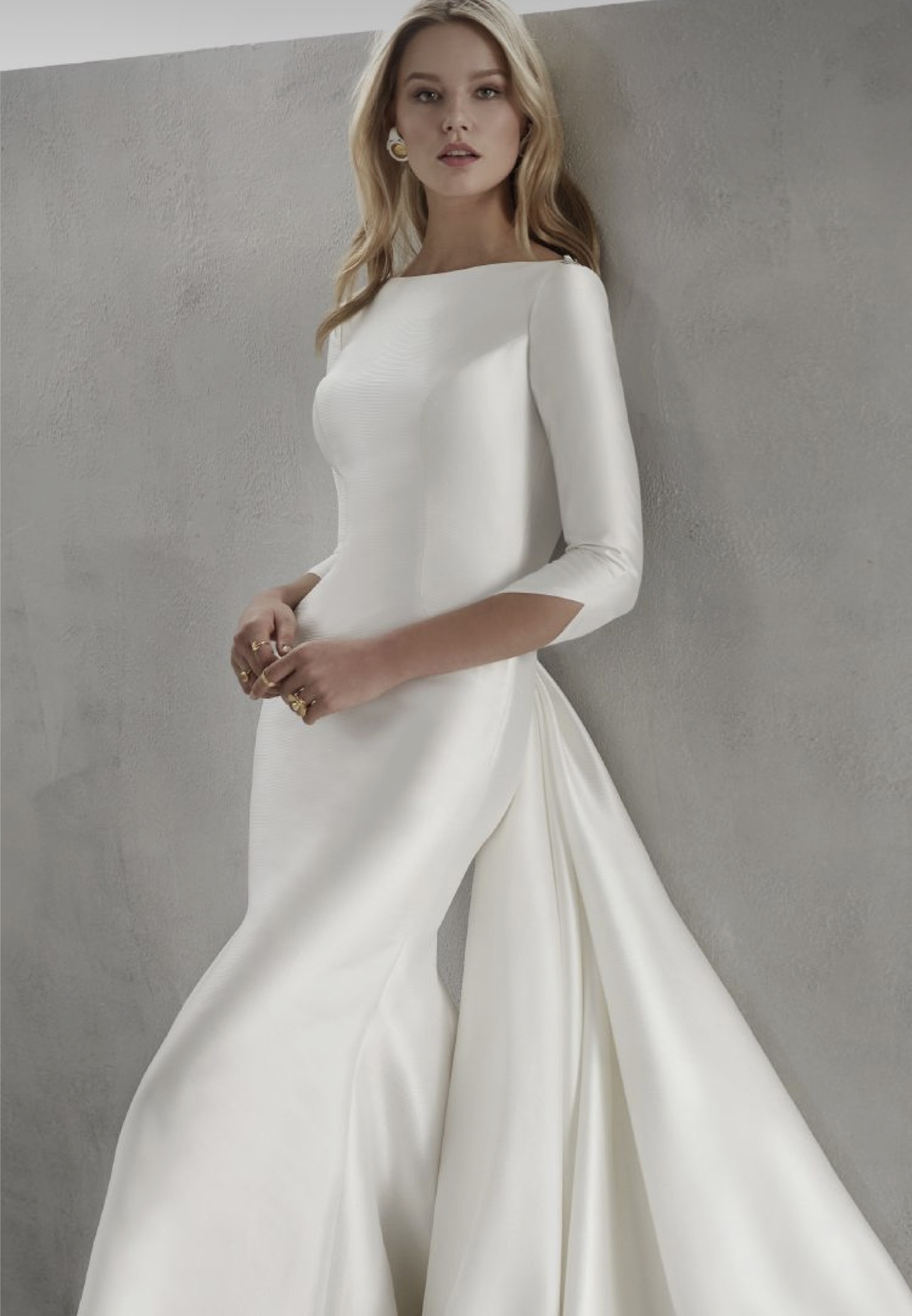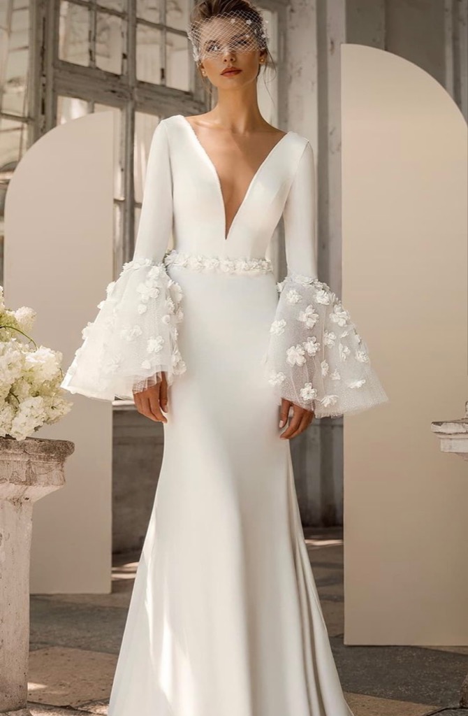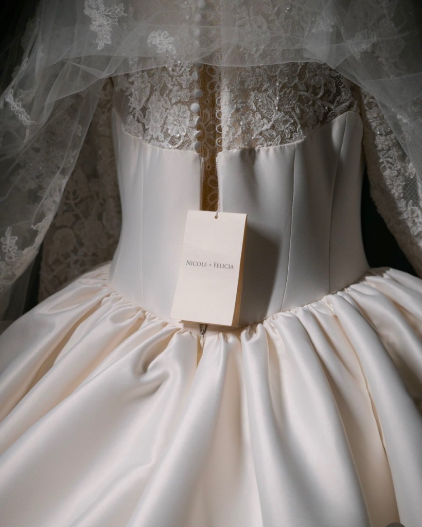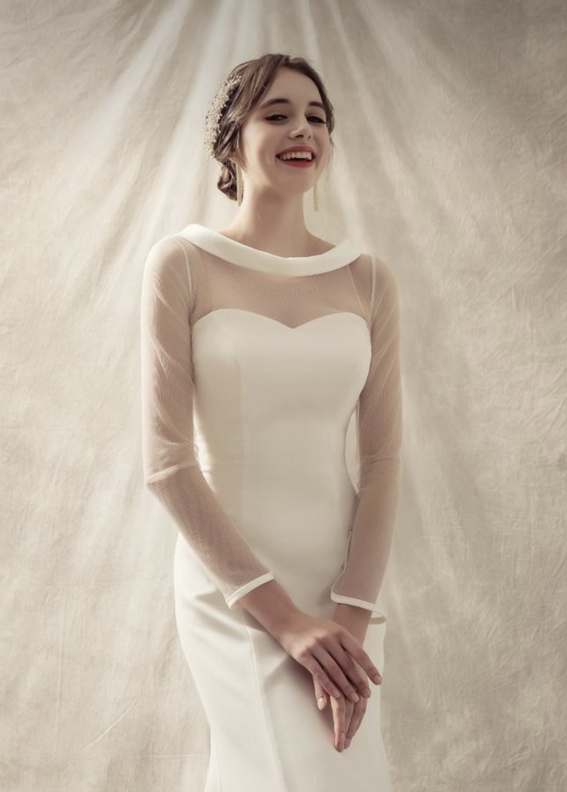 ミカドシルクであつらえたロングスリーブのウェディングドレス…。 王道のスタイルに一番よく似合う、「Vintage Wedding Pearl」の白蝶真珠。