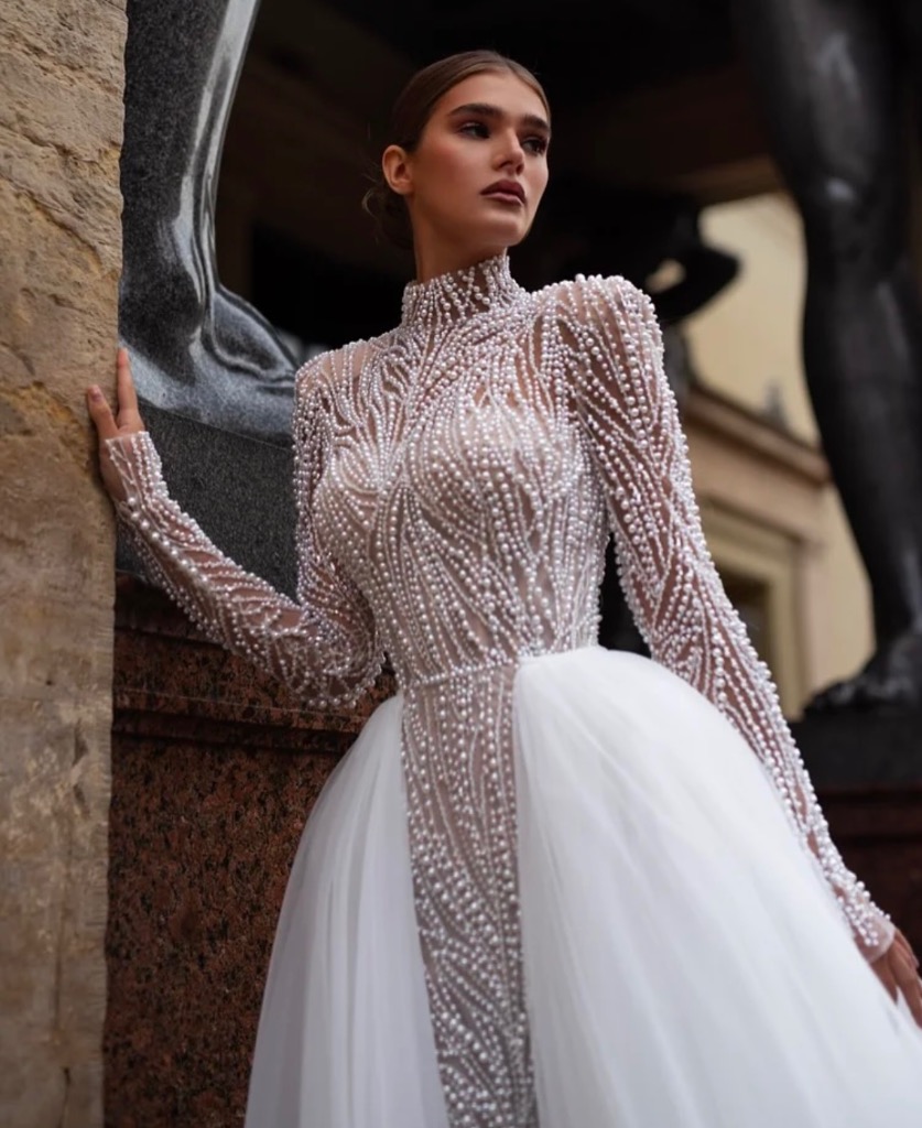 パールを散りばめたウェディングドレス