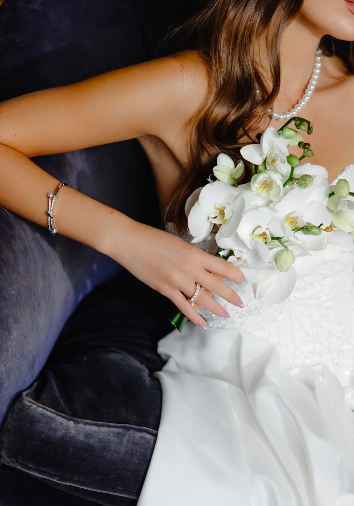 ネックレスやブレスも控えて、とにかく何もジュエリーを付けない‼︎ 何故なら、ドレス自体がまるでジュエリーだから。