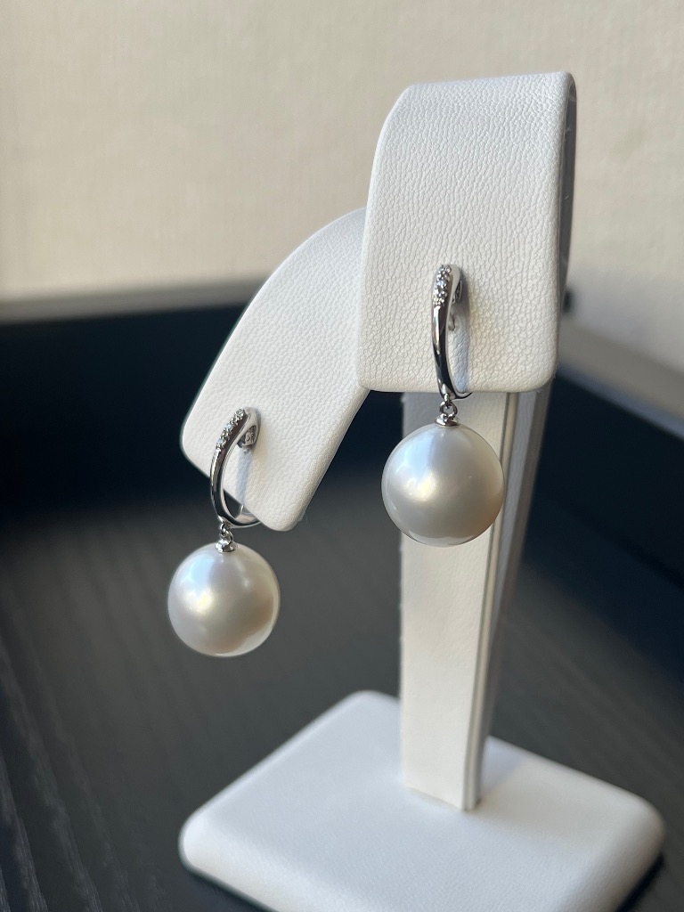 後ろ姿が美しい上品なドレスには、やっぱり白蝶真珠の大珠イヤリングかピアスのみだと、ウェディングドレスが引き立ちます。