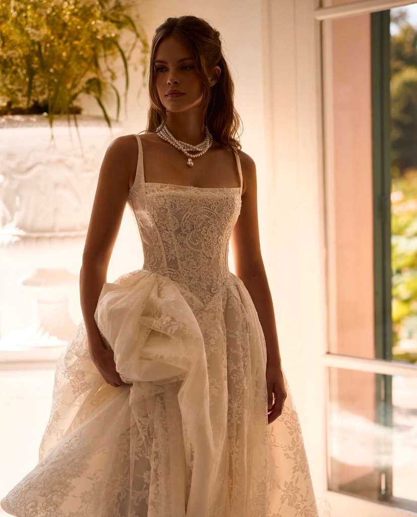 ウェディングドレスには花嫁様の個性と好き好きがハッキリでます。レースには、余りゴテゴテジュエリーを付けずに、一点豪華主義な付け方がインパクト大👌です。