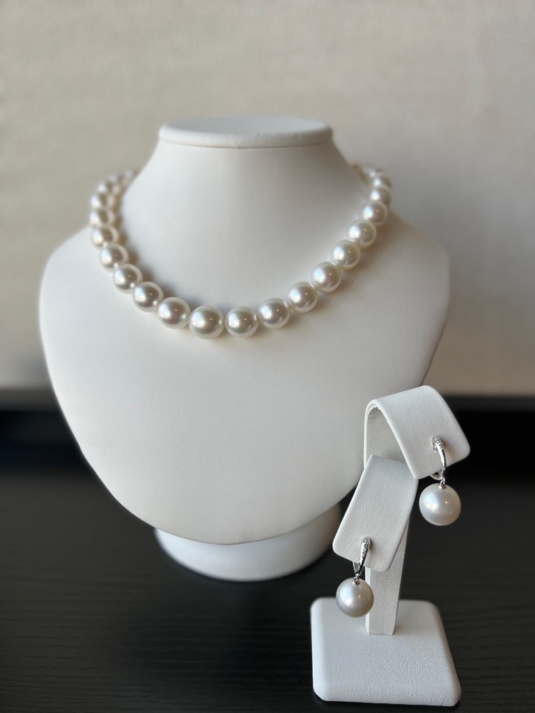 真珠とダイヤ💎は何故こんなにも相性が良いのでしょう。 きっとダイヤの硬い石に、正反対な柔らかい真珠が、優しさと嫋やかさでダイヤを包み込んでしまうのでしょう…。貴方のウェディングドレスにもきっと合うはず。